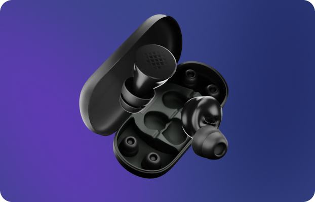 XS-L silicone tips create a snug, no-slip seal for every ear shape.